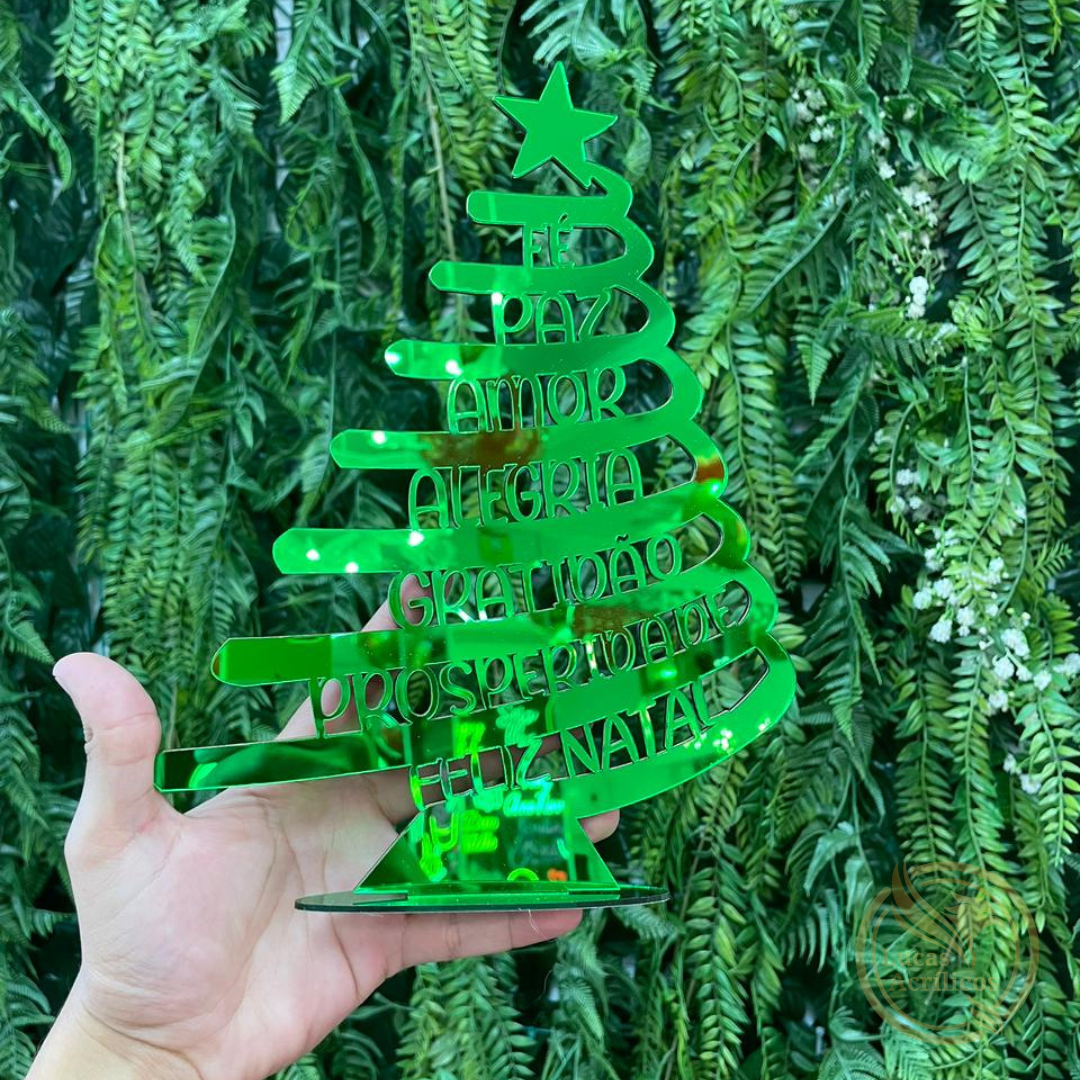 ÁRVORE DE NATAL PALAVRAS EM ACRÍLICO COM REFORCÇO MDF 28X20 CM