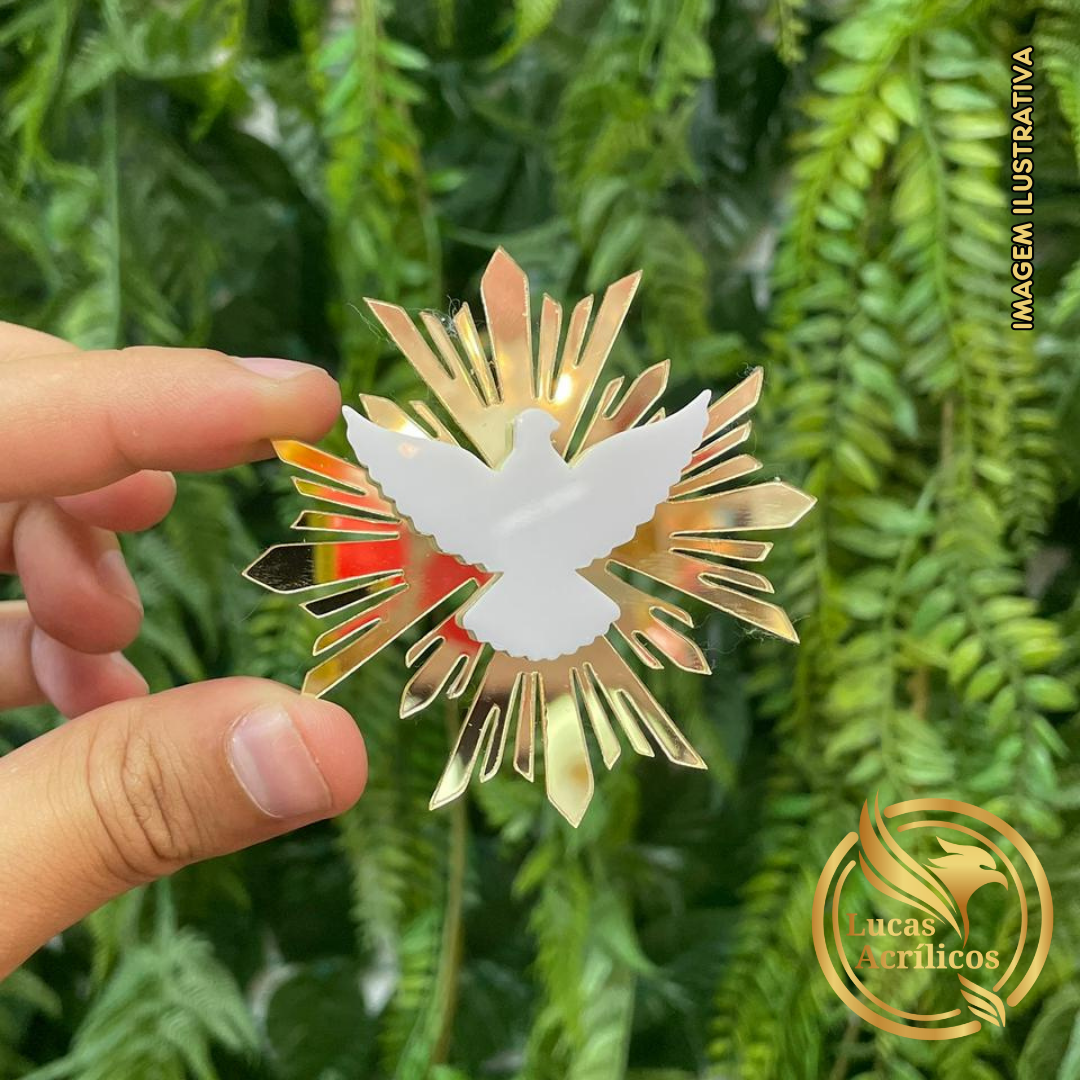 Apresentamos nossos apliques personalizado do Divino Espírito Santo, feito em Acrílico Premium Espelhado, perfeito para marcar momentos especiais como batizados, crismas e celebrações religiosas. Com um design sofisticado e detalhado, o símbolo do Divino Espírito Santo traz proteção e espiritualidade, unindo fé e elegância em uma peça única.