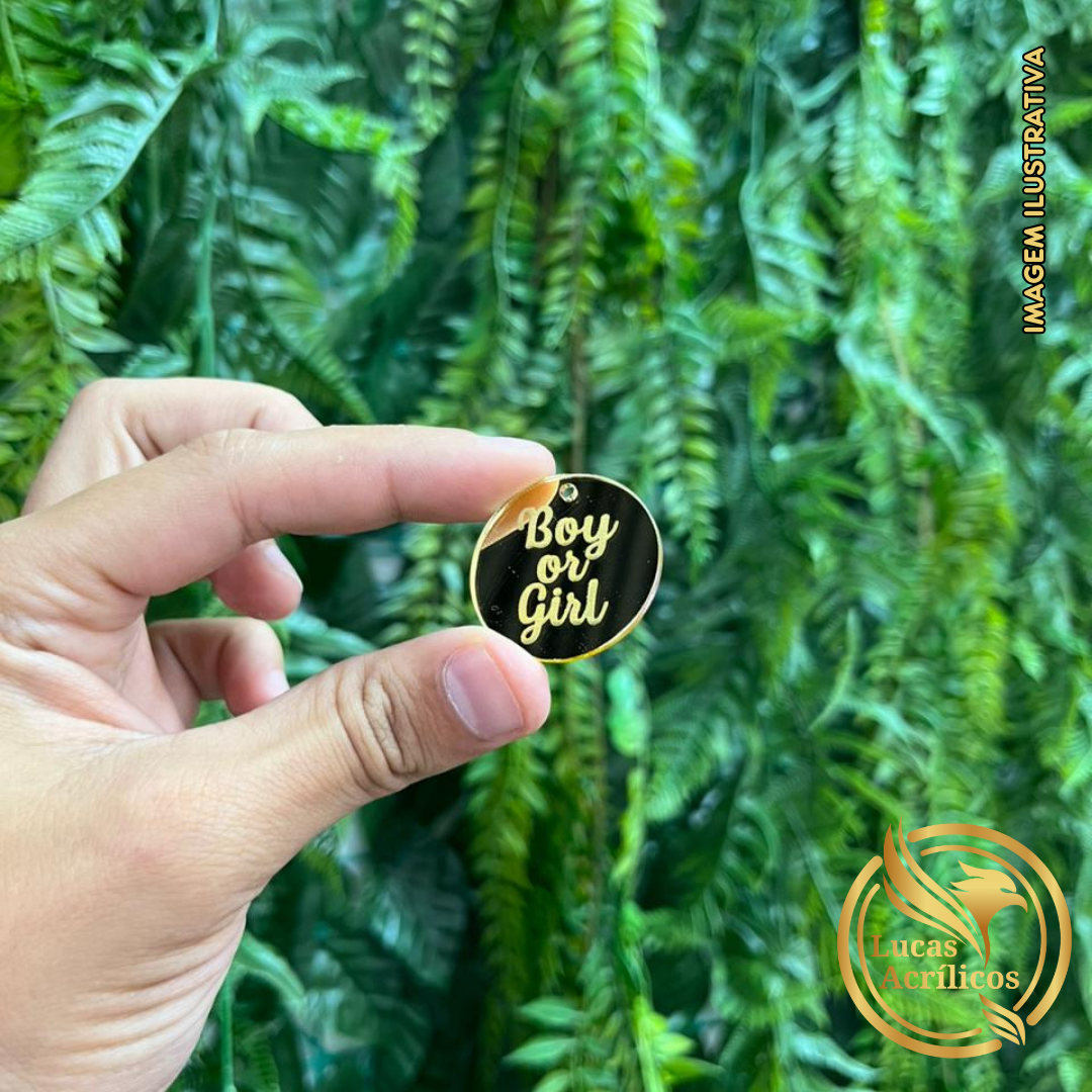 KIT COM 10 TAGS BOY OR GIRL EM ACRÍLICO 3CM