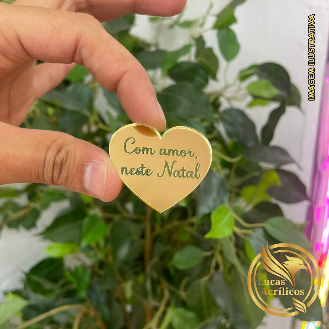 KIT COM 10 TAGS DE NATAL CORAÇÃO EM ACRÍLICO 4X4CM
