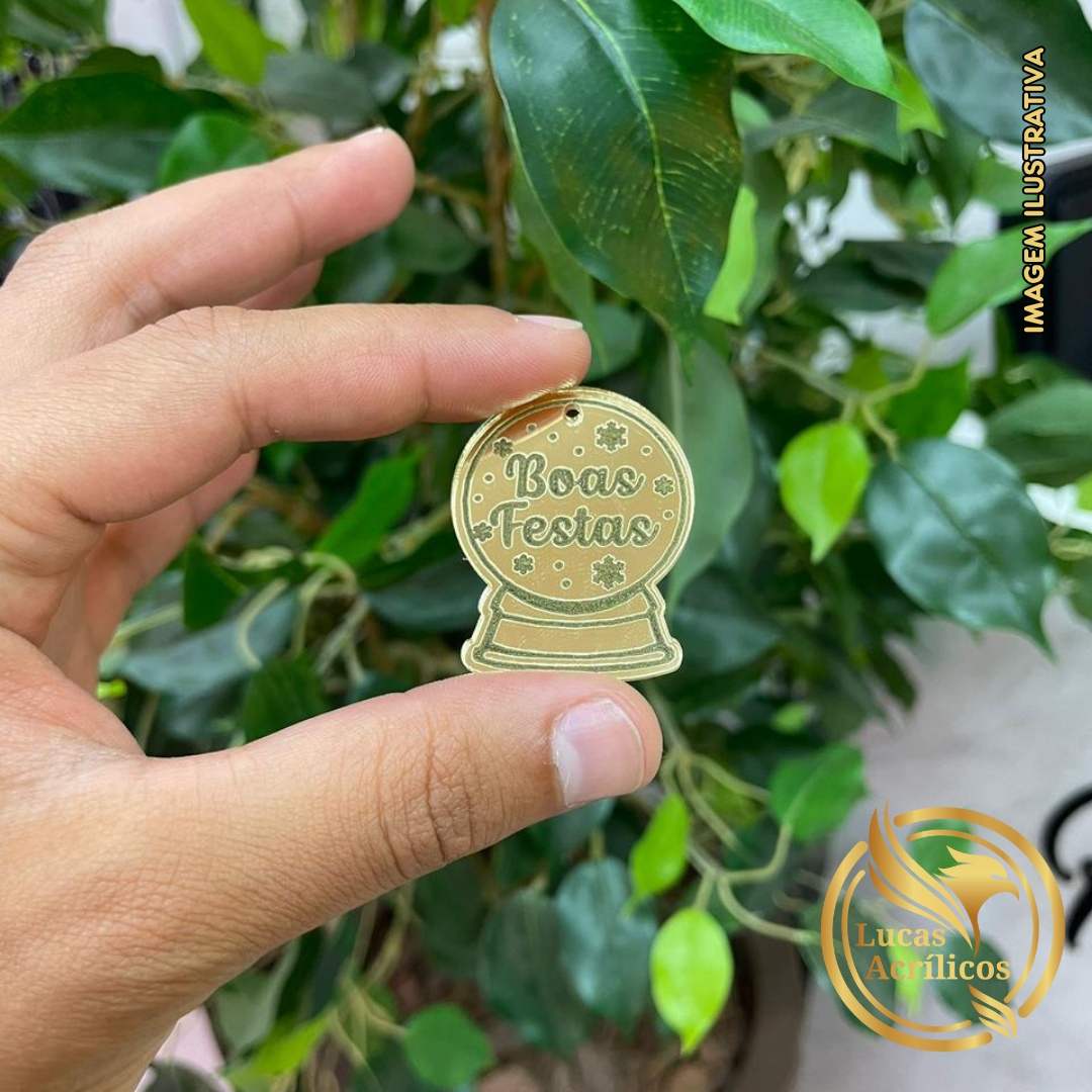 KIT COM 10 TAGS GLOBOS DE NEVE EM ACRÍLICO 4X3CM