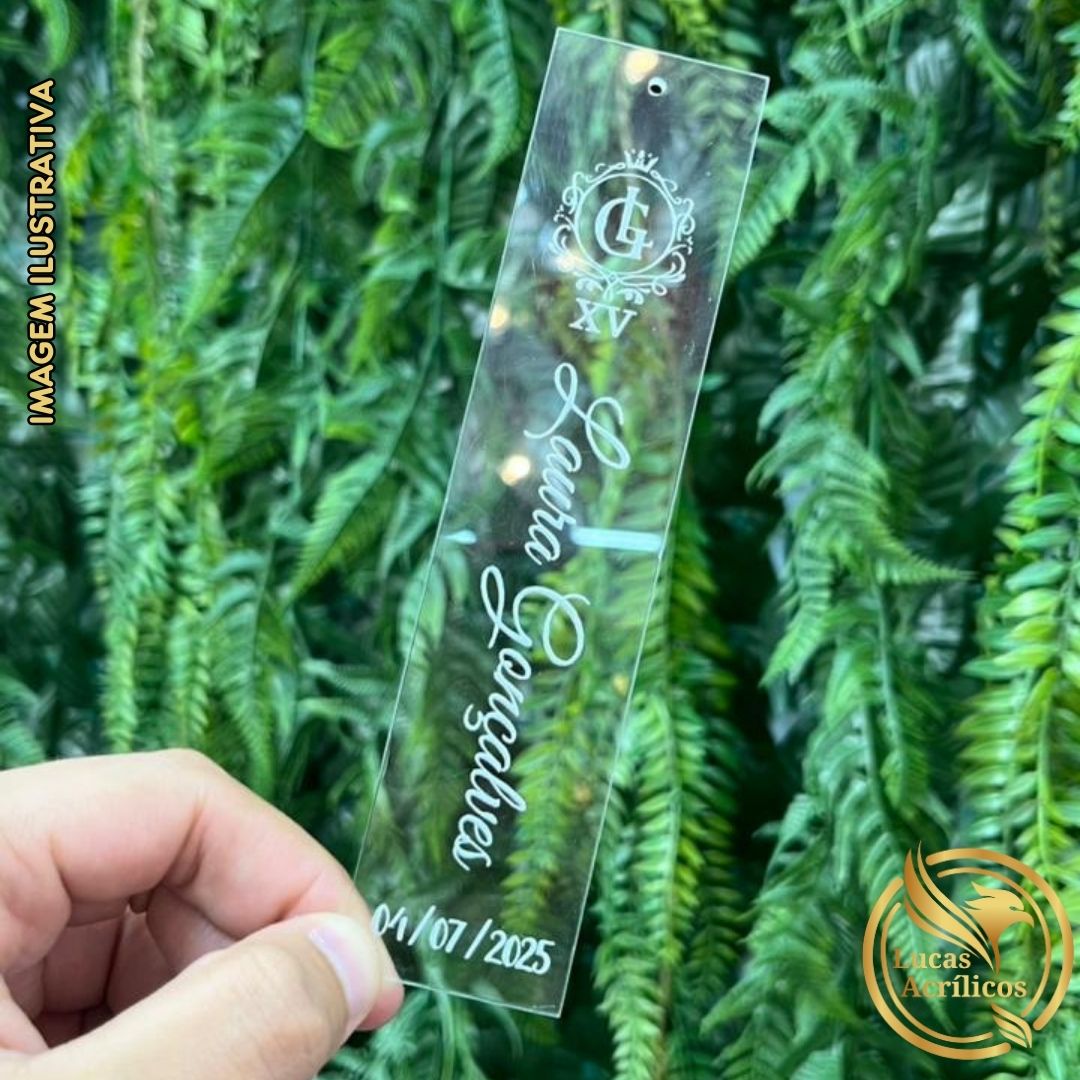 MARCA PÁGINA EM ACRÍLICO PERSONALIZADO COM FURO 15X3,5 CM